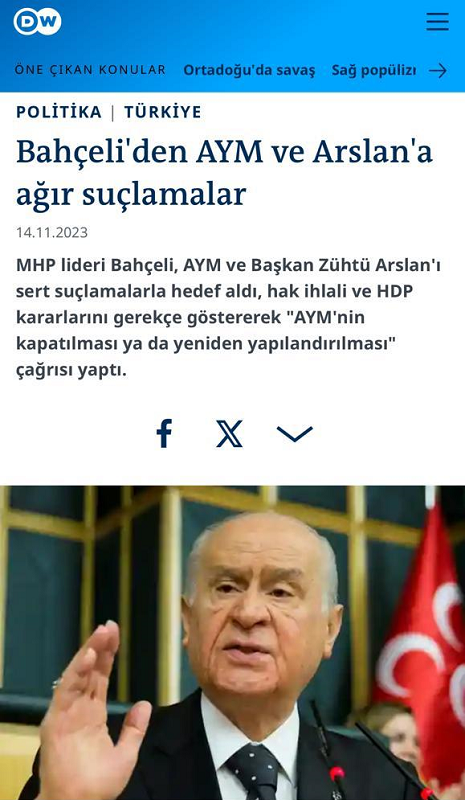 MHP-Führer Bahçeli hat das Verfassungsgericht (AYM) und dessen Präsidenten Zühtü Arslan mit scharfen Anschuldigungen ins Visier genommen. Unter Berufung auf Entscheidungen zu Rechtsverletzungen und die HDP forderte er die "Schließung oder Umstrukturierung des Verfassungsgerichts".